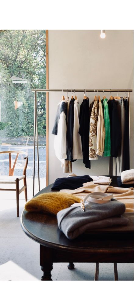 2024年9月に新店舗へ移転しました。落ち着いた店内にはレディース・アイテムを中心に、バッグ、シューズ、アクセサリー、雑貨、メンズアイテムも揃えています。